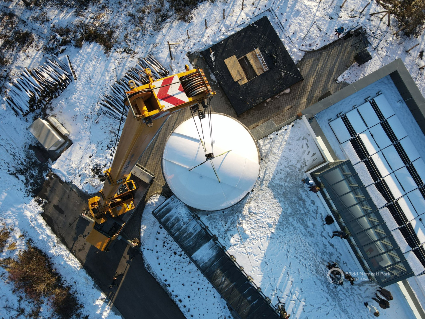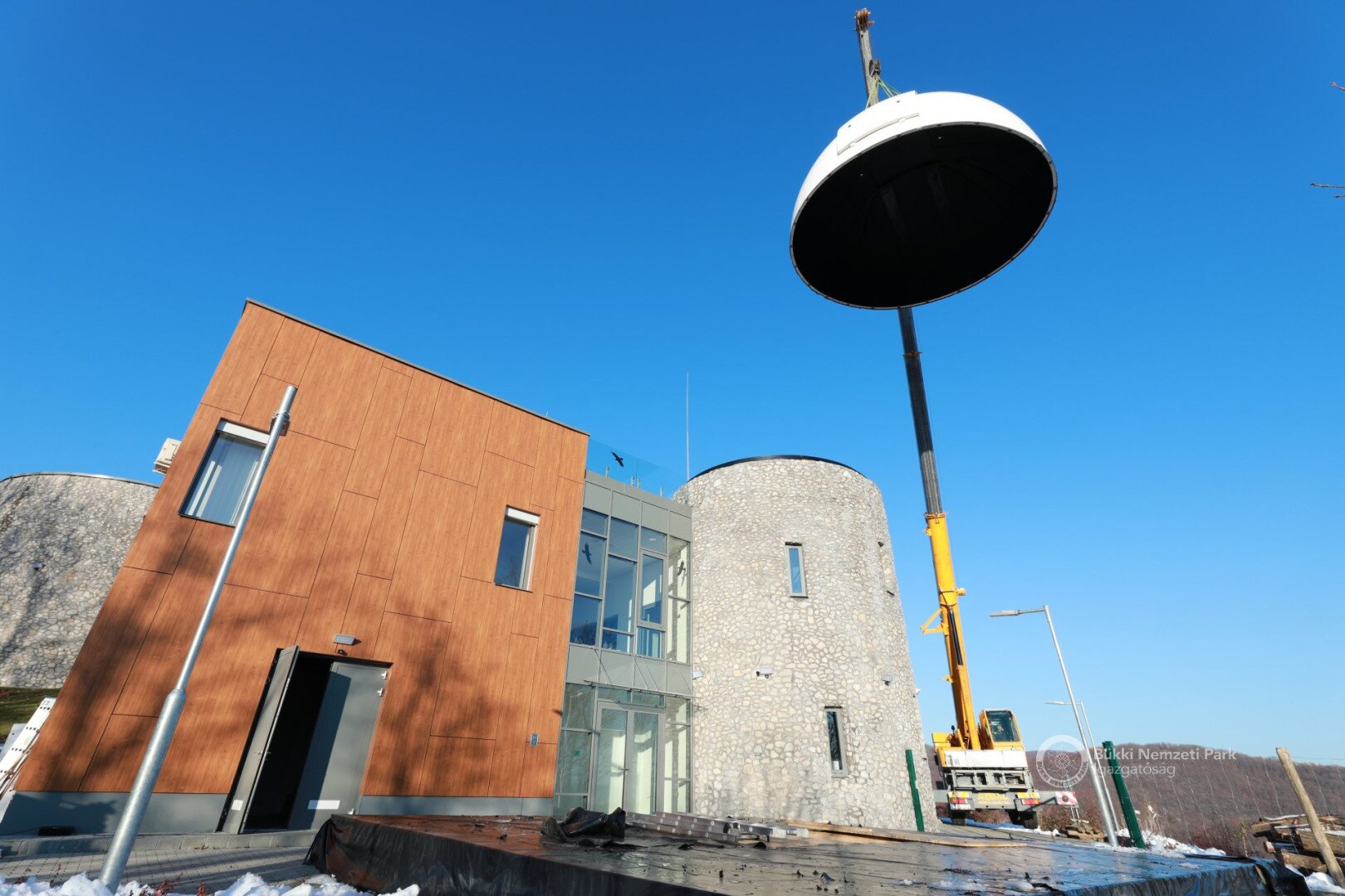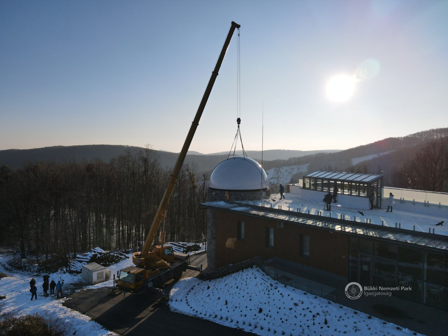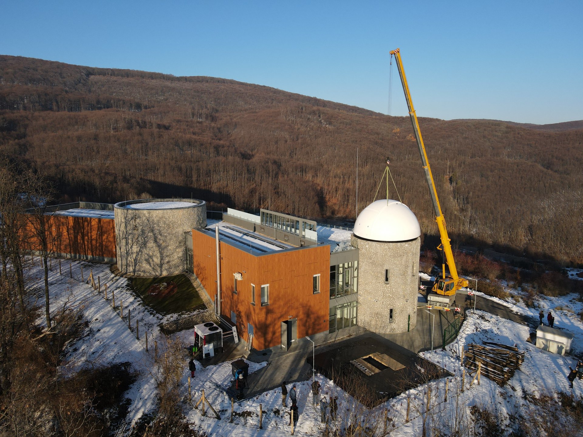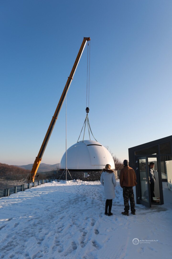 Az épület legemblematikusabb része, a világ legnagyobb sorozatban gyártott 6,7 méter átmérőjű csillagászati kupolája december 8-án, szerdán daruval került a Répáshuta mellett álló csillagvizsgáló tetejére. A munkálatokat nagyban segítette a napsütéses, száraz téli időjárás.