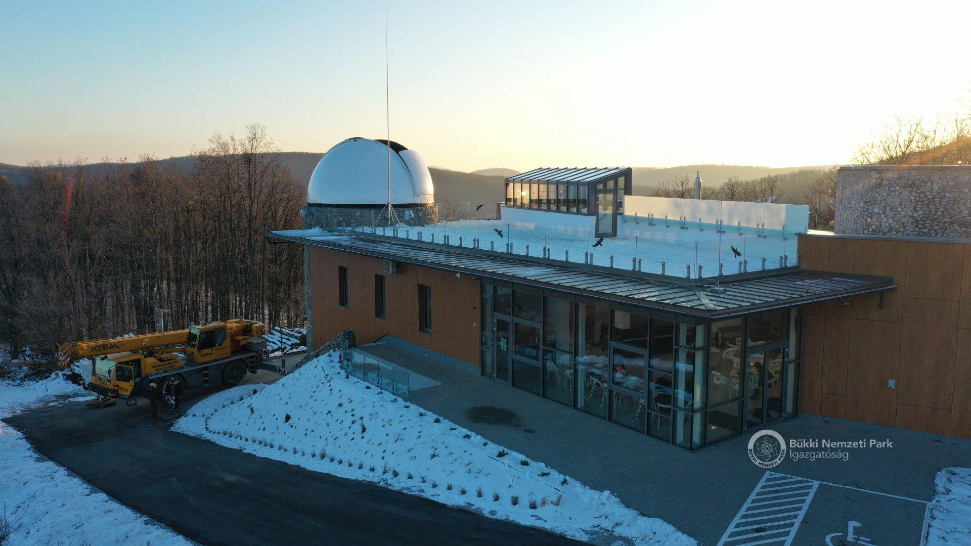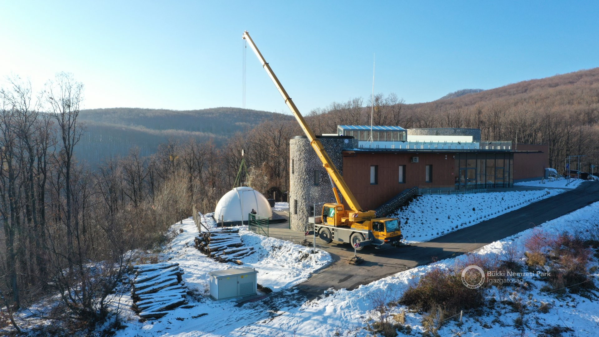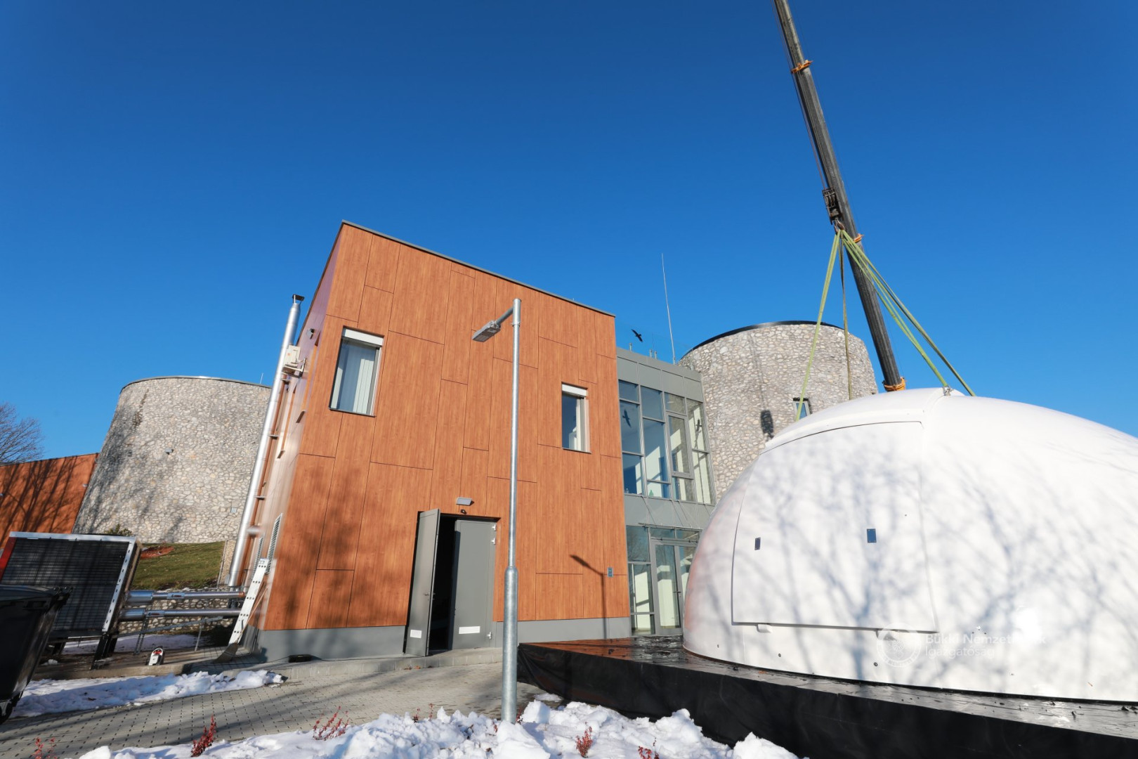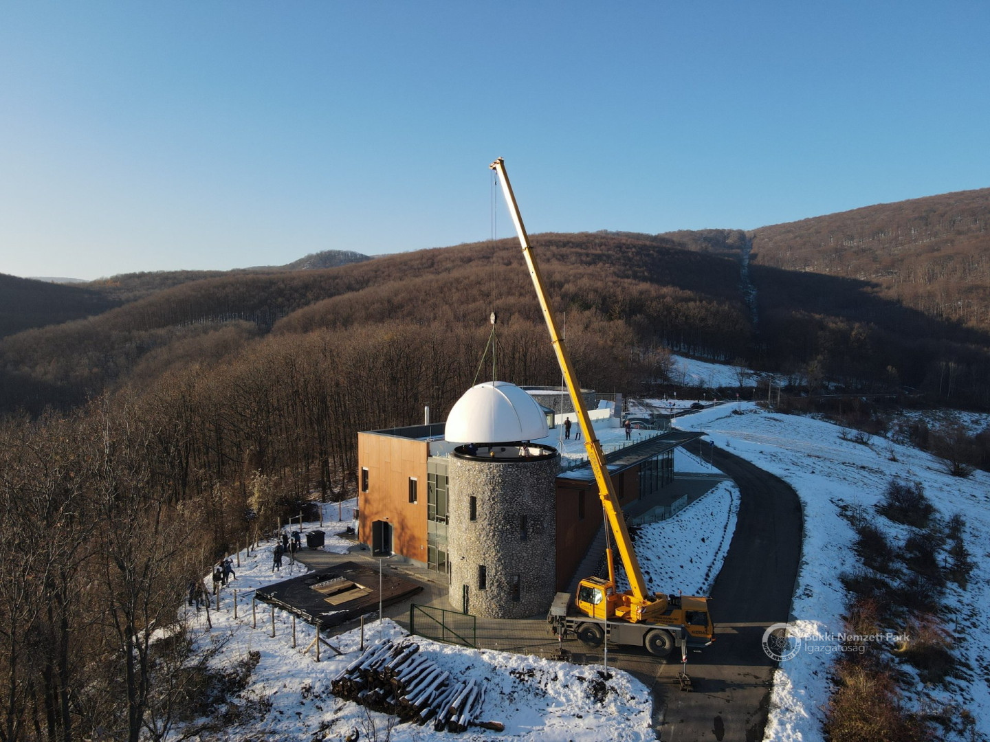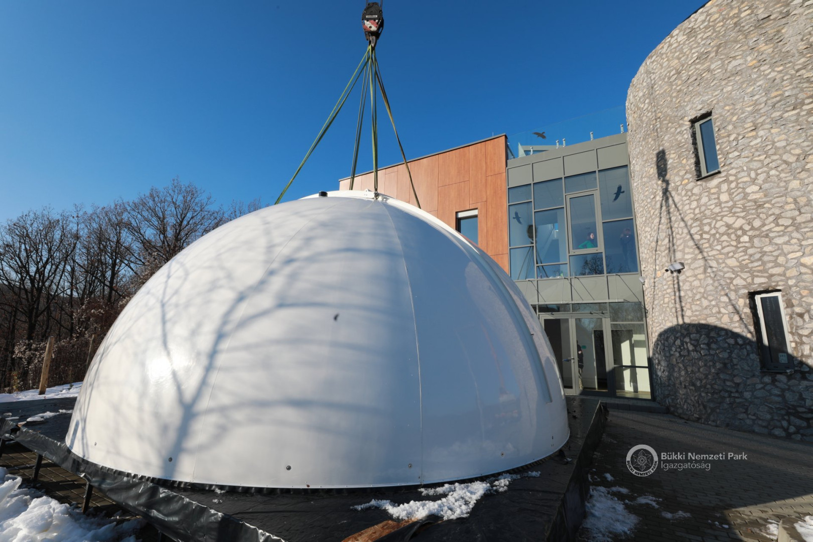 Az épület legemblematikusabb része, a világ legnagyobb sorozatban gyártott 6,7 méter átmérőjű csillagászati kupolája december 8-án, szerdán daruval került a Répáshuta mellett álló csillagvizsgáló tetejére. A munkálatokat nagyban segítette a napsütéses, száraz téli időjárás.