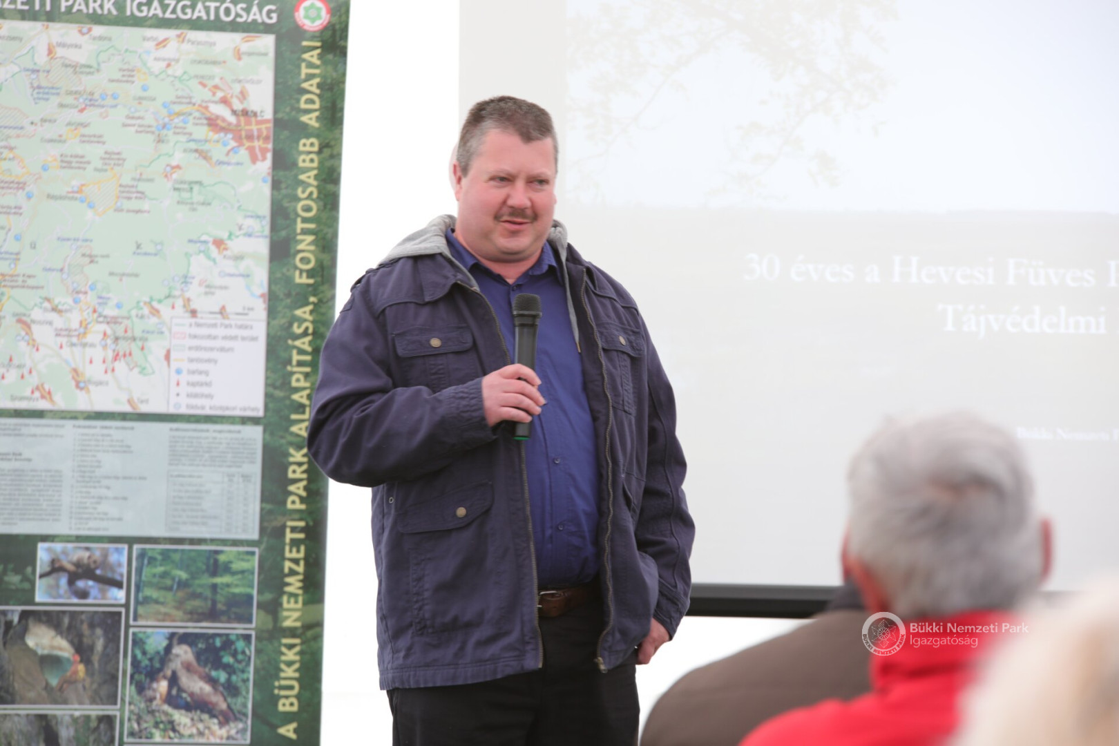 A rendezvény helyszínét az idén fennállásának 30. évét ünneplő Hevesi Füves Puszták Tájvédelmi Körzet adta. A körzet történetéről Tóth László, a Dél-Hevesi Tájegység tájegységvezetője tartott előadást. Felidézte: a védetté nyilvánítás célja a Hevesi Sík eredeti állapotát reprezentáló pusztai élőhelyek, a rajtuk élő túzok, valamint fokozottan védett ragadozó madarak megóvása volt. A terület az évek folyamán többször is bővült, jelenlegi területe 16114 hektár. (A körzet történetéről hamarosan cikket jelentetünk meg honlapunkon.)
