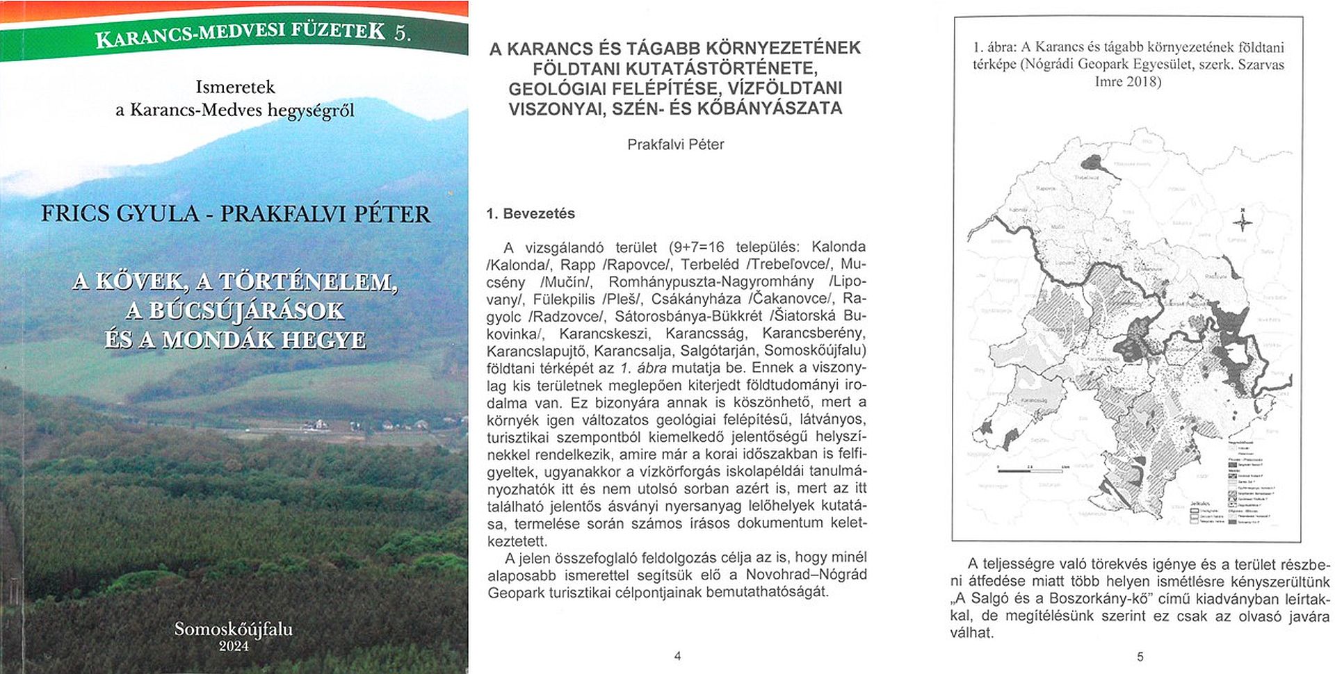 Könyvészeti adatai:Prakfalvi Péter (2024): A Karancs és tágabb környezetének földtani kutatástörténete, geológiai felépítése, vízföldtani viszonyai, szén- és kőbányászata. pp. 4-69. in Frics Gyula-Prakfalvi Péter (2024): A kövek, a történelem, a búcsújárások és mondák hegye. – Karancs-Medvesi Füzetek 5. Ismerek a Karancs-Medves Hegységről. Kiadó: Somosi Környezetnevelési Központ 287 p.