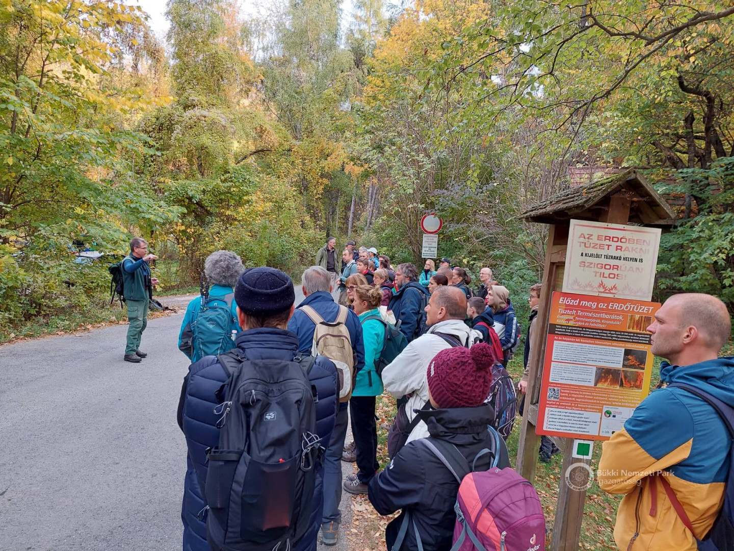 Az időközben eleredő csendes esőben, s többek között egy alpesi gőte-élőhely kapcsán, sikerült a klíma és az erdő viszonyrendszerébe is beavatni a csapatot, valamint az eltűnő fenyvesek példáján a klímaváltozás, a madarak és a nagyragadozók világában is elkalandoztunk. Végül, miután a bánya-hegyi találkozópontra hiánytalanul visszaérkezett mindenki, a terület természetvédelmi őre, megköszönve a látogatók részvételét, a Nemzeti Park tervezett programjaira hívta föl a résztvevők figyelmét.