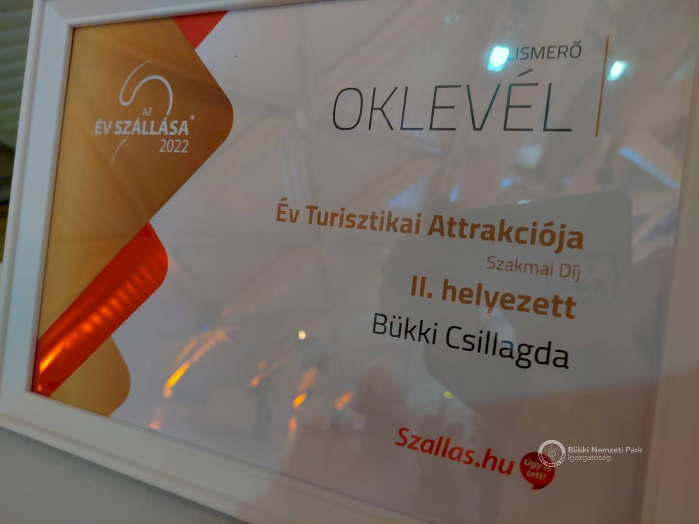 Nagy örömünkre, a Bükki Csillagda az Év Turisztikai Attrakciója Szakmai Díj II. helyezettje lett. Az elismerést Rónai Kálmánné, a Bükki Nemzeti Park Igazgatóság igazgatója vette át.