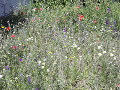Kétféle magkeveréket vetettünk el áprilisban, egy 23 fajból álló egyéves magkeveréket, és egy 42 fajból álló, évelő növények magjait tartalmazó keveréket, melyeket a természetiskola területére jellemző kötött talajhoz ajánlott az előállító. A magokat a Vadvirág Világ-tól (Dorcadion Tanácsadó és Szolgáltató Kft.) szereztük be, mely Magyarországon őshonos növények szaporító képleteinek és egyedeinek kertészeti előállításával foglalkozik. Kereskedelmi forgalomban számos vadvirág magkeveréket lehet találni, azonban mindig győződjünk meg róla, hogy a vásárolt magok csak hazánkban honos növényekből származnak!