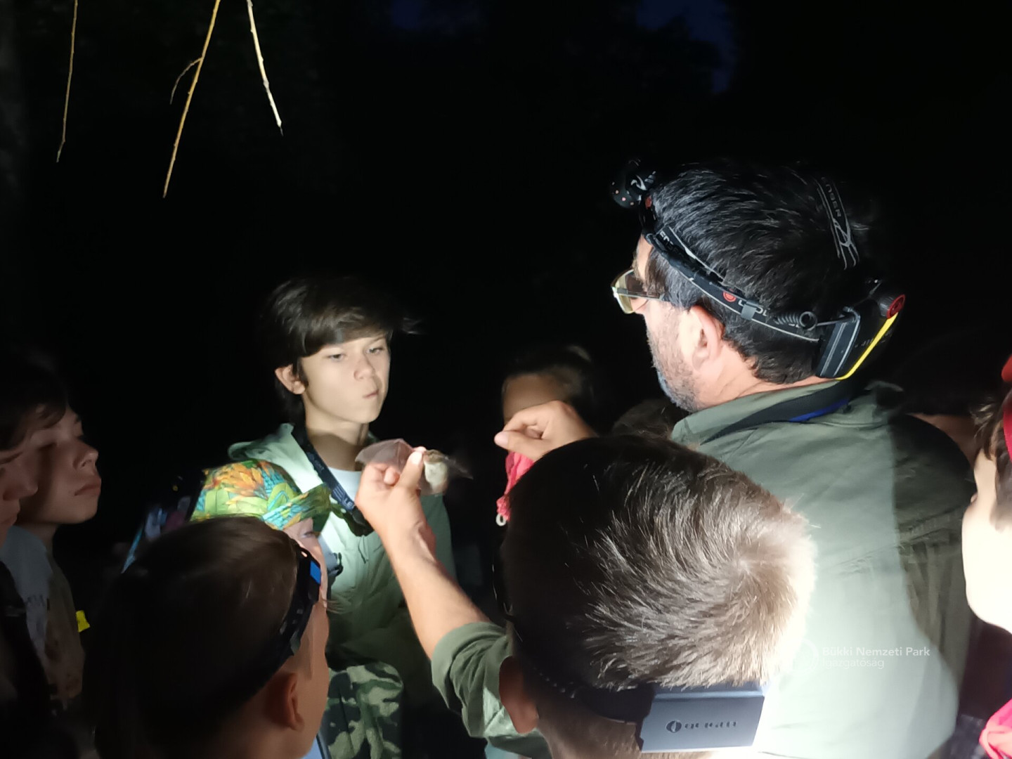 A hétfői érkezés, ismerkedés és a szálláshely elfoglalása után rövid túrát tettünk Sástó környékén, beszéltünk a tó történetéről, átalakításáról, a környéket érintő természetvédelmi problémákról, feladatokról. Nem mentünk messzire, hiszen a Farkas-kút forrásáig felsétálva is számos érdekességgel, lepkékkel, szarvasbogarakkal, békákkal találkoztunk, a kutatás, felfedezés öröme pedig a forrásnál is megmaradt, további kétéltűeket, vízben élő apróságokat fedeztünk fel. Egy kis pihenés után este is folytatódott a program: Gombkötő Péter, a Bükki Nemzeti Park Igazgatóság zoológiai szakreferense a denevérek világába vezetett be minket. Megmutatta nekünk, milyen eszközöket használnak az állatok befogásához és megfigyeléséhez, a denevérfogó háló segítségével pedig több faj egyedeit is begyűjtöttük és így közelebbről szemlélhettünk meg olyan fajokat, mint például a törpe-, a vízi- és a bajuszos denevér. Emellett a denevérek életmódjáról, a hozzájuk kötődő hiedelmekről, a hazánkban előforduló fajokról is számos érdekességet tudhattunk meg.