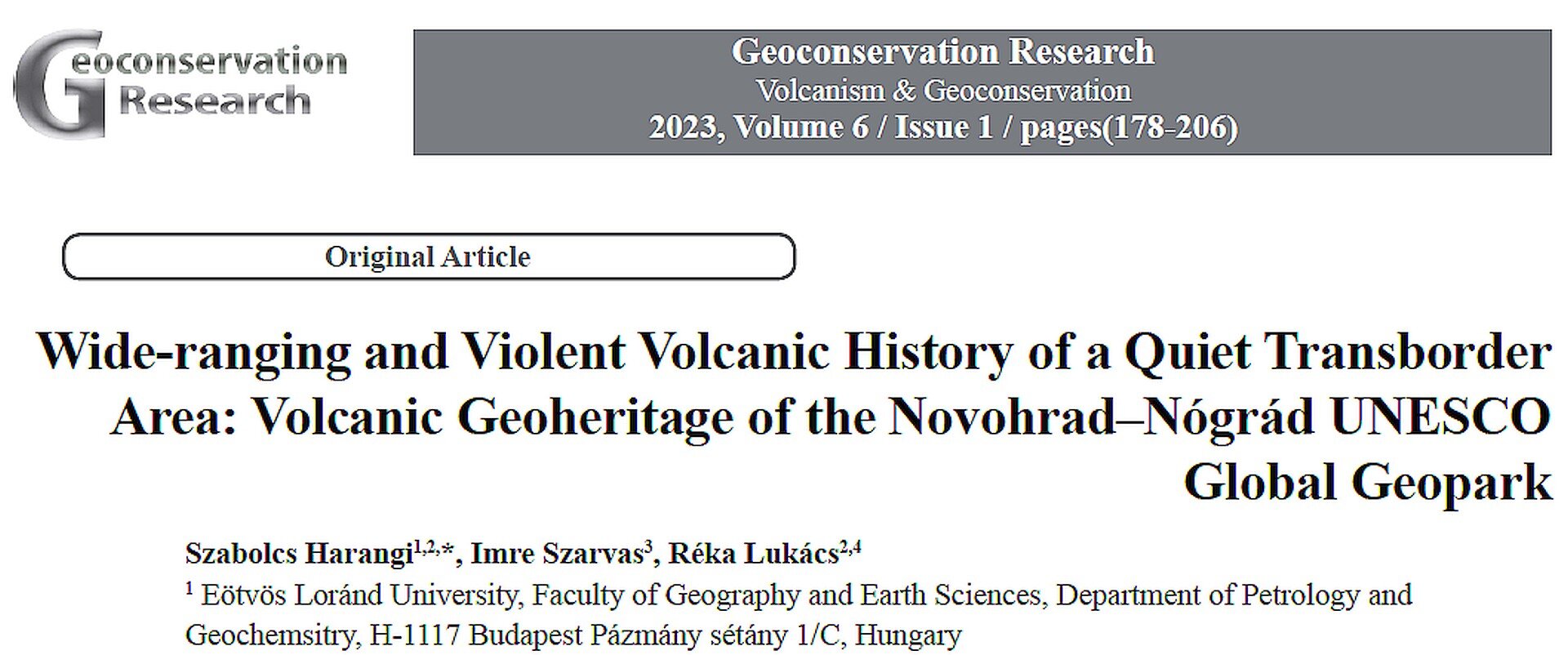 A Novohrad-Nógrád UNESCO Globális Geopark viharos eseményekben rendkívül gazdag vulkáni örökségét Harangi Szabolcs professzor legújabb tanulmánya népszerűsítette a Geoconservation Research folyóiratban.