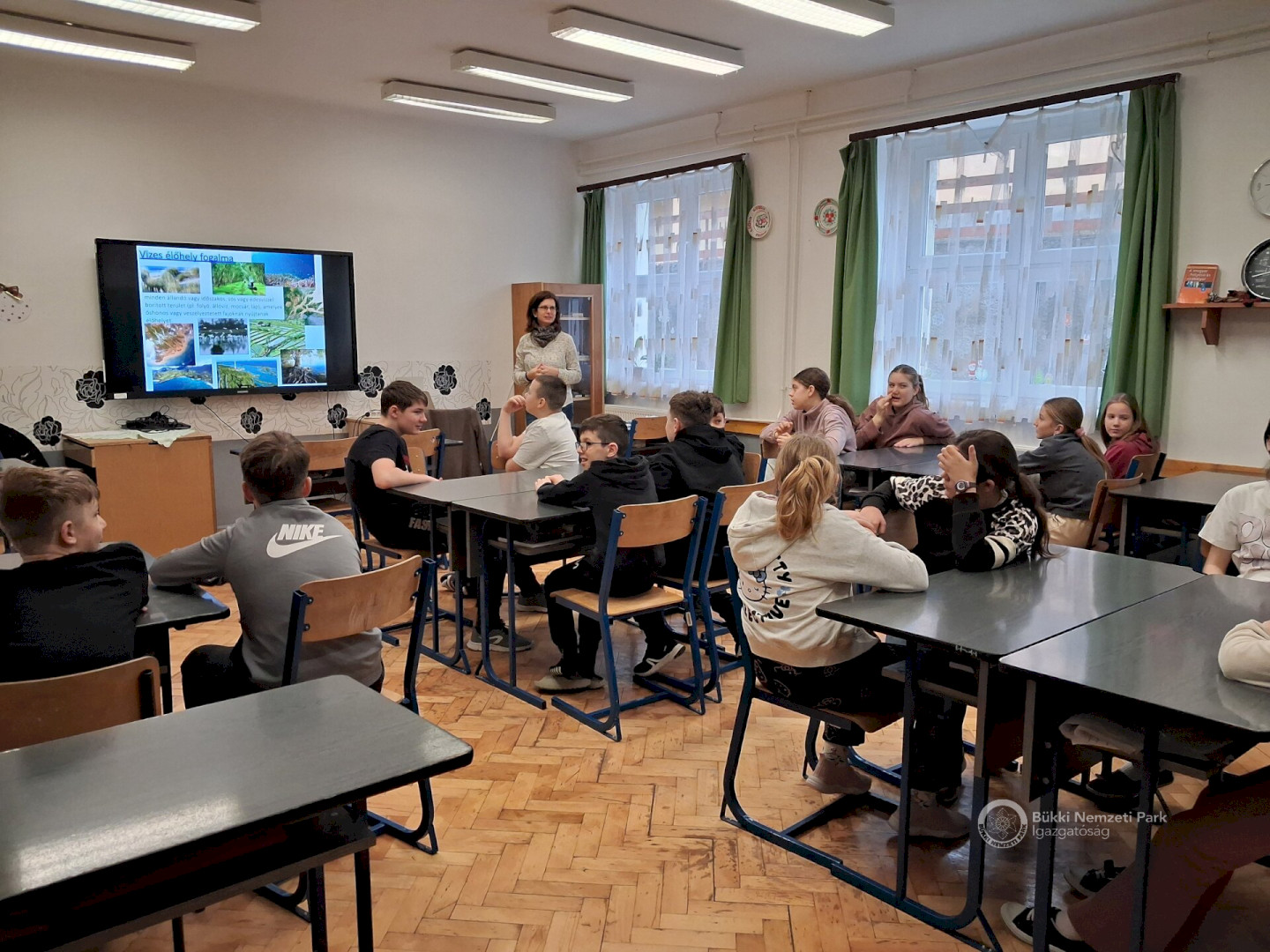 Mivel ez a világnap év elejére esik, mikor a természet még alig-alig ébredezik, programunkat az iskolákhoz ellátogatva, tanórai keretek között tartottuk meg. A foglalkozás első felében a vizes élőhelyeket érintő Ramsari Egyezményt mutattuk be, valamint a vizes élőhelyek sérülékenységéről, a legfontosabb veszélyeztető tényezőkről, a kiszáradásról, a mederszabályozás hatásairól beszélgettünk a gyerekekkel. Az előadást követő foglalkozáson az Igazgatóság vizes élőhelyeit, valamint a hozzájuk kapcsolódó állatcsoportok legfontosabb képviselőit ismerhették meg a diákok játékos formában.