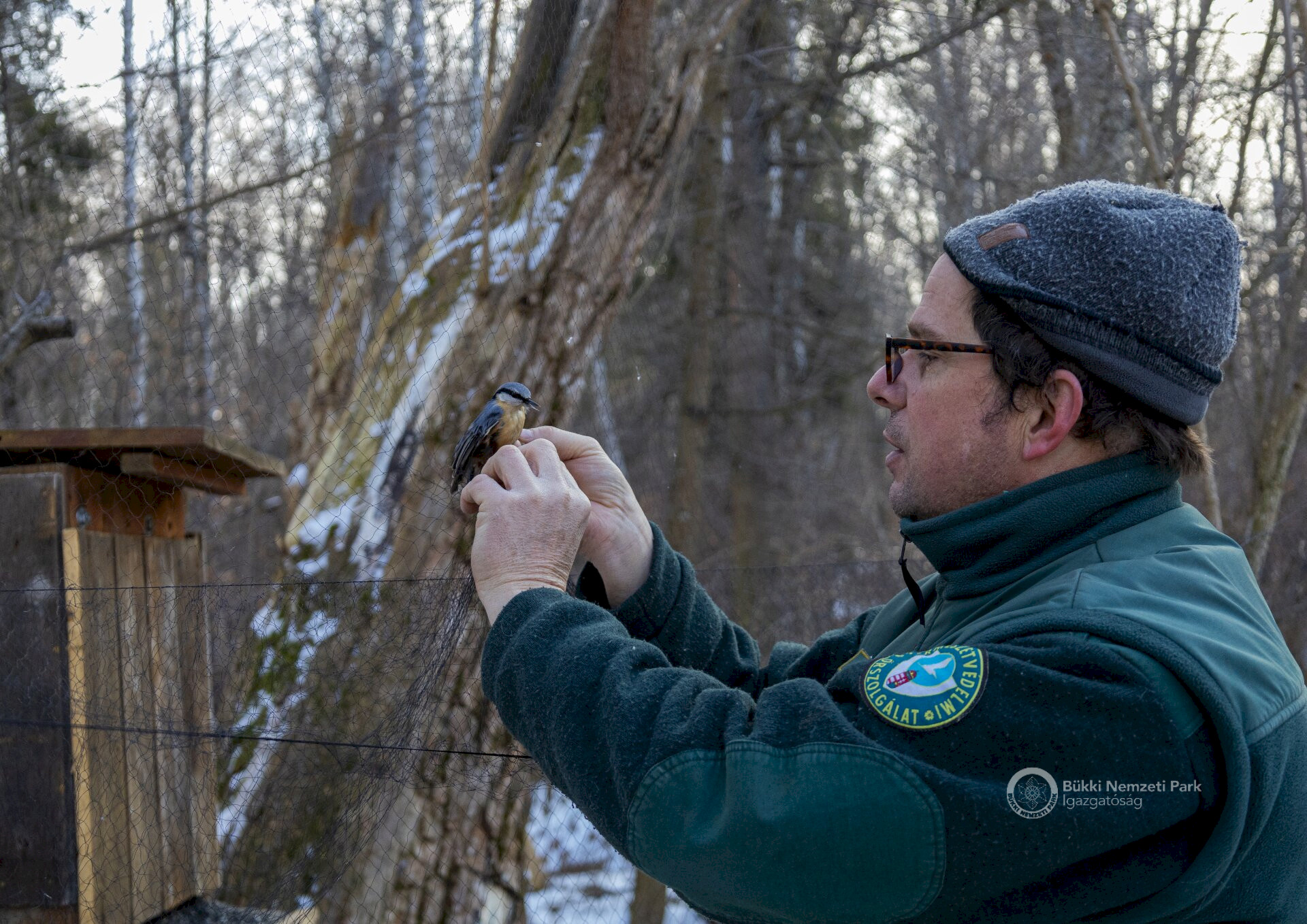 - Madárgyűrűzés Ézsöl Tibor BNPI természetvédelmi őrrel - erdei környezetben, a látogatóközpont közelében