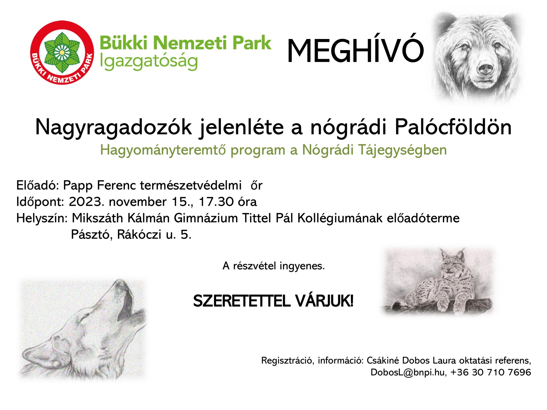 Hagyományteremtő előadássorozatot indít a Bükki Nemzeti Park Igazgatóság Nógrádi Tájegysége a pásztói Mikszáth Kálmán Gimnáziummal együttműködve. Az előadások helyszíne a Tittel Pál Kollégium előadóterme lesz.